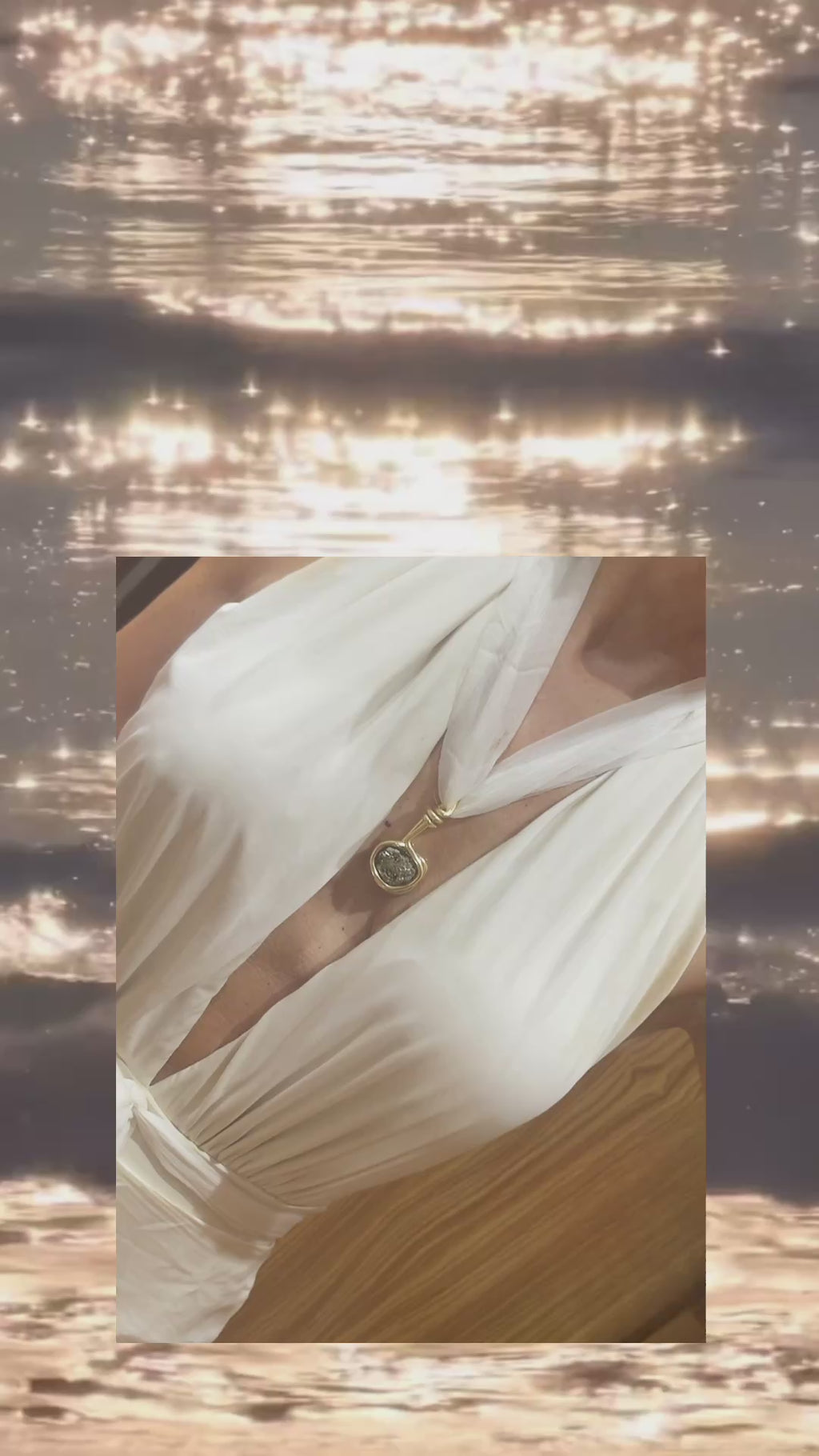 Choker em seda com pingente de pedra Pirita.